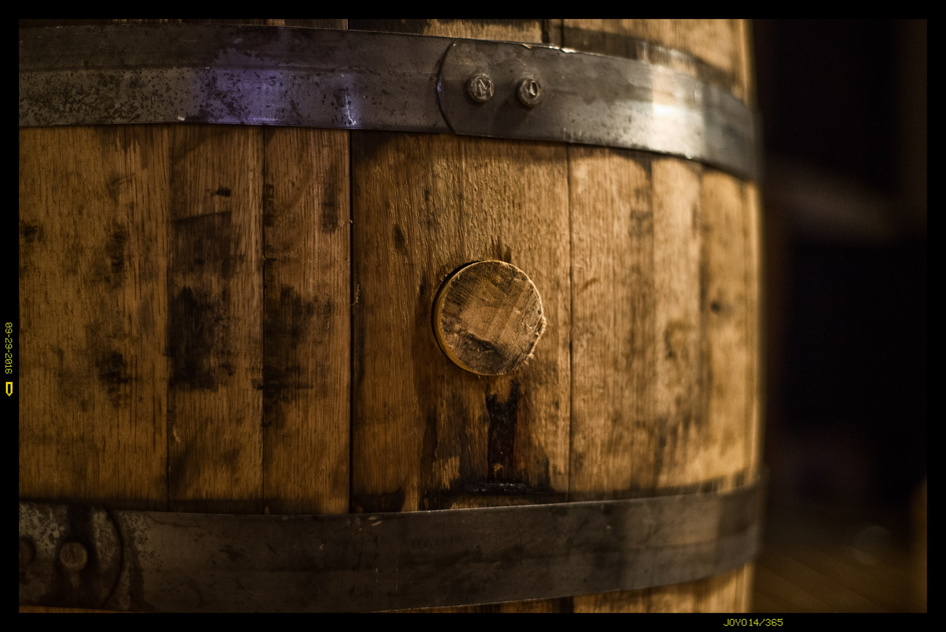 Day 014 -My beloved bourbon barrel was just sitting there begging to be photographed.It had nothing to do with it being late and my first two ideas not working out.(September 29, 2016)