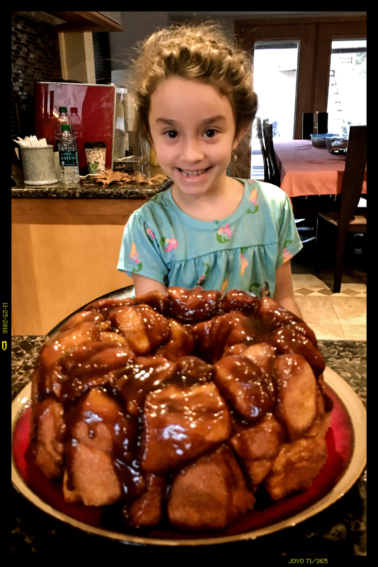 Day 071 -It’s black Friday, but instead of being at Best Buy, I had an great assistant to help make monkey bread. It was delicious and a great way to start my day. (November 25, 2016)