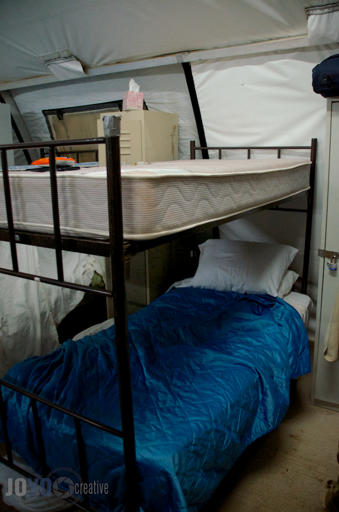 Day 124 -Home sweet home for now.  I think I’ll be upgraded to a trailer in a couple of weeks.  As for now it’s just me and 50 other guys. -JANUARY 7