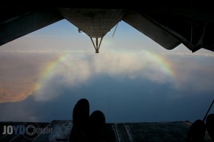 Day 146 -It was one of those days where I felt very fortunate and happy to be in the military. I was working on a Marine CH-53 helicopter and those are my feet as I sat in the back with the ramp down. I think Cedar Point won’t be nearly as fun next time. So big thanks to the Maj. Howell and the Marines 464th Det A for the ride of a lifetime. As a bonus this little rainbow formed in the mist outside the back. -JANUARY 29