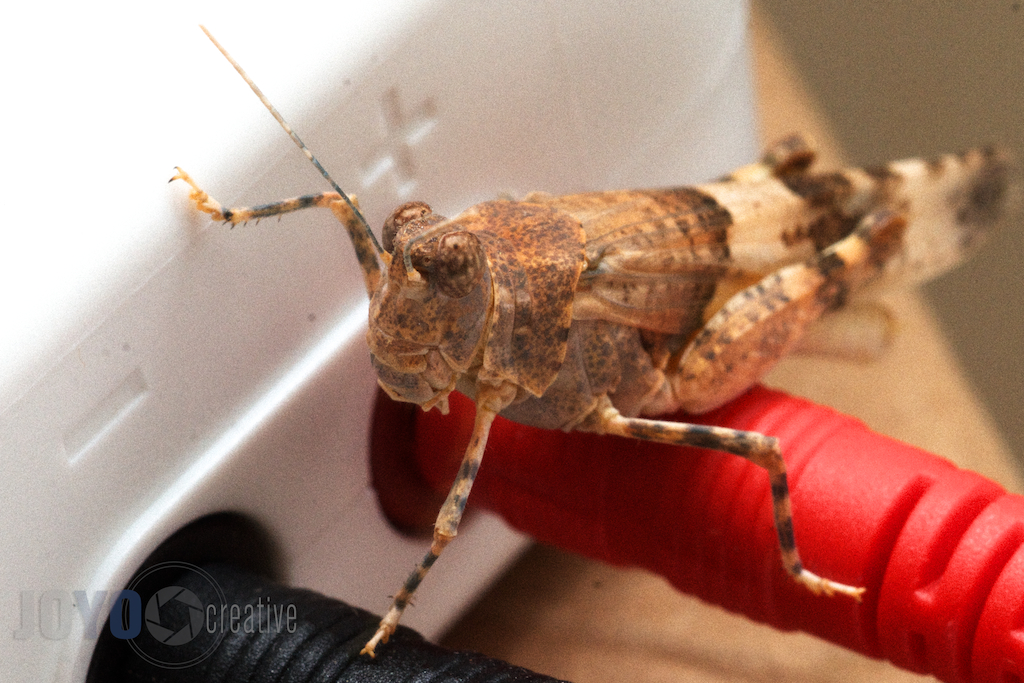 Day 245 -A grasshopper from District 9 decided to visit the office today. It’s always nice when a photo just lands in your lap. And as with any bug photo I take, this was goes out to Joe. -MAY 8