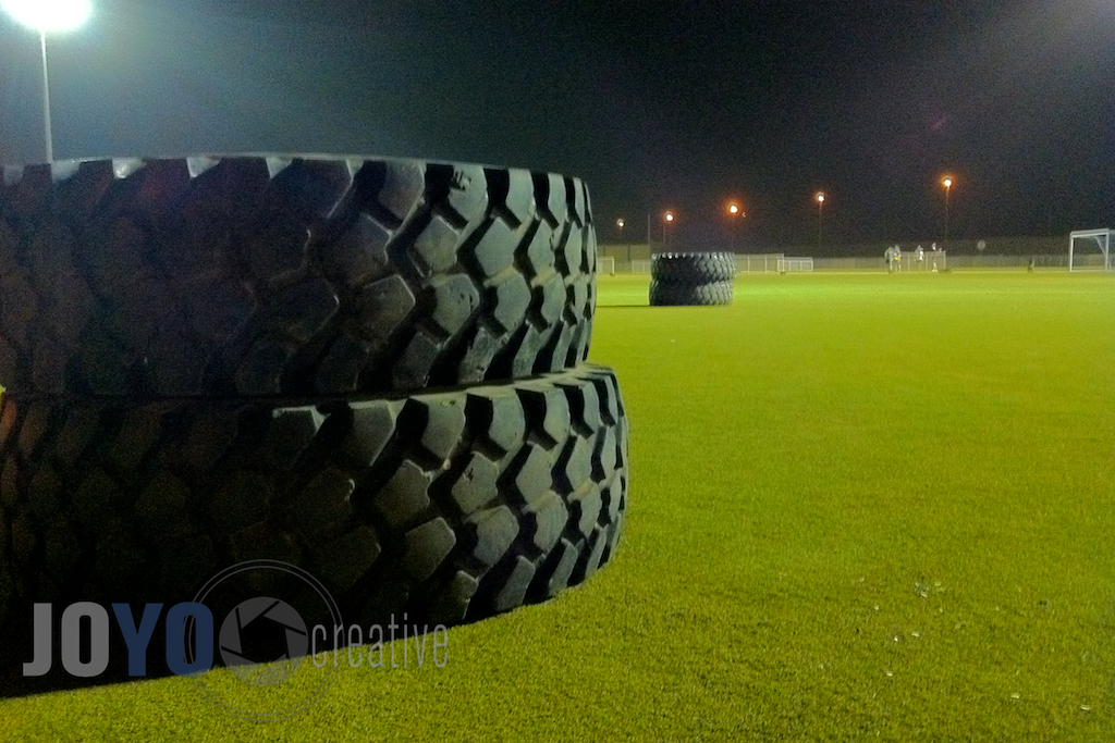 Day 308 -On my way to the room and noticed the giant tires on the field for crossfit.  I needed a photo so why not. -JULY 10