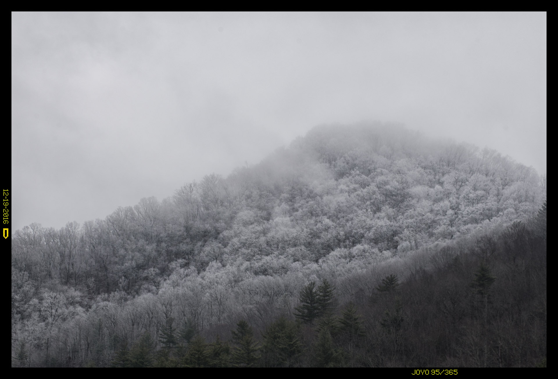 Day 095 -Driving through the mountains and got excited to spot snow, only later to find out that it was frozen fog. None the less it was beautiful. (December 19, 2016)
